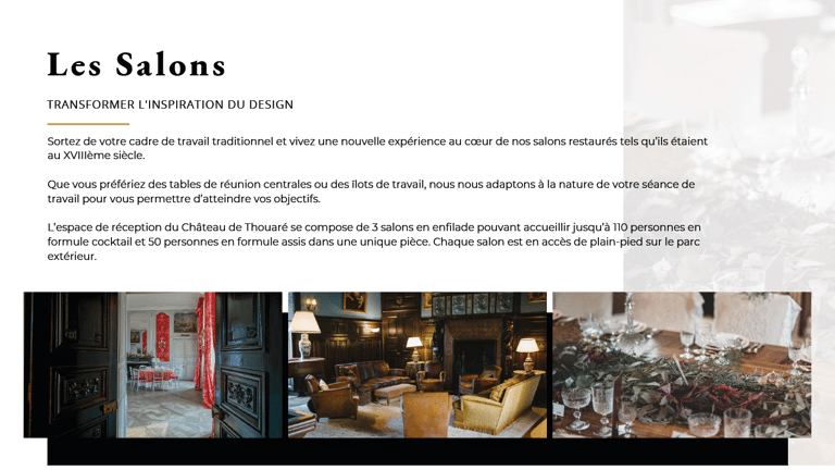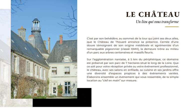 Le Château de Thouaré souhaitait une brochure raffinée pour présenter ses prestations : mariages, réceptions et événements professionnels.